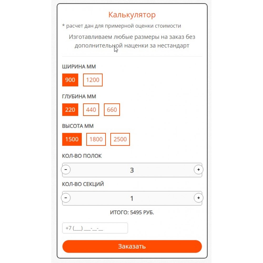 Модуль "Калькулятор стеллажей" от веб-студии Максвебсайт г. Сысерть