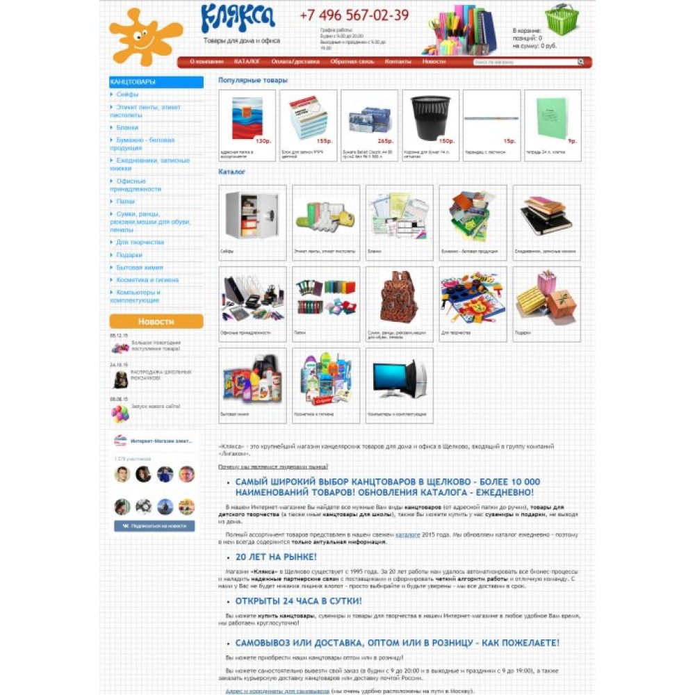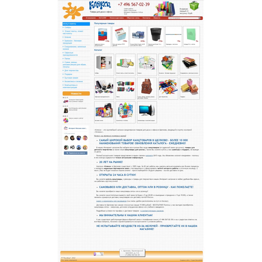 Интернет-магазин канцелярских товаров Клякса от веб-студии Максвебсайт г. Сысерть