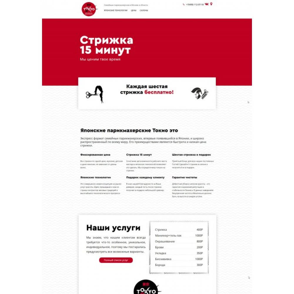 Сайт-лендинг сети парикмахерских Токио г.Москва от веб-студии Максвебсайт г. Сысерть
