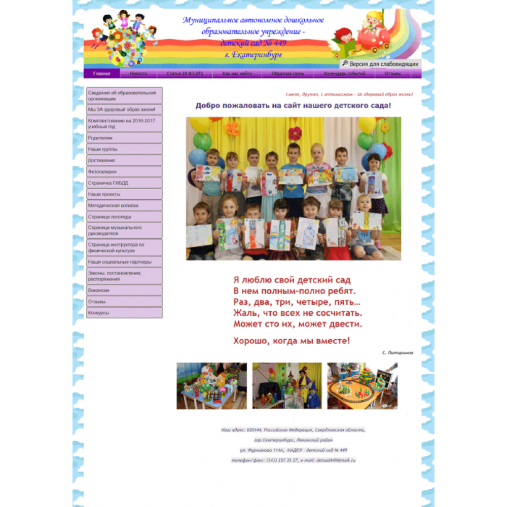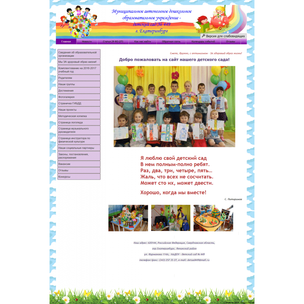 Сайт муниципального детского сада г.Екатеринбург от веб-студии Максвебсайт г. Сысерть