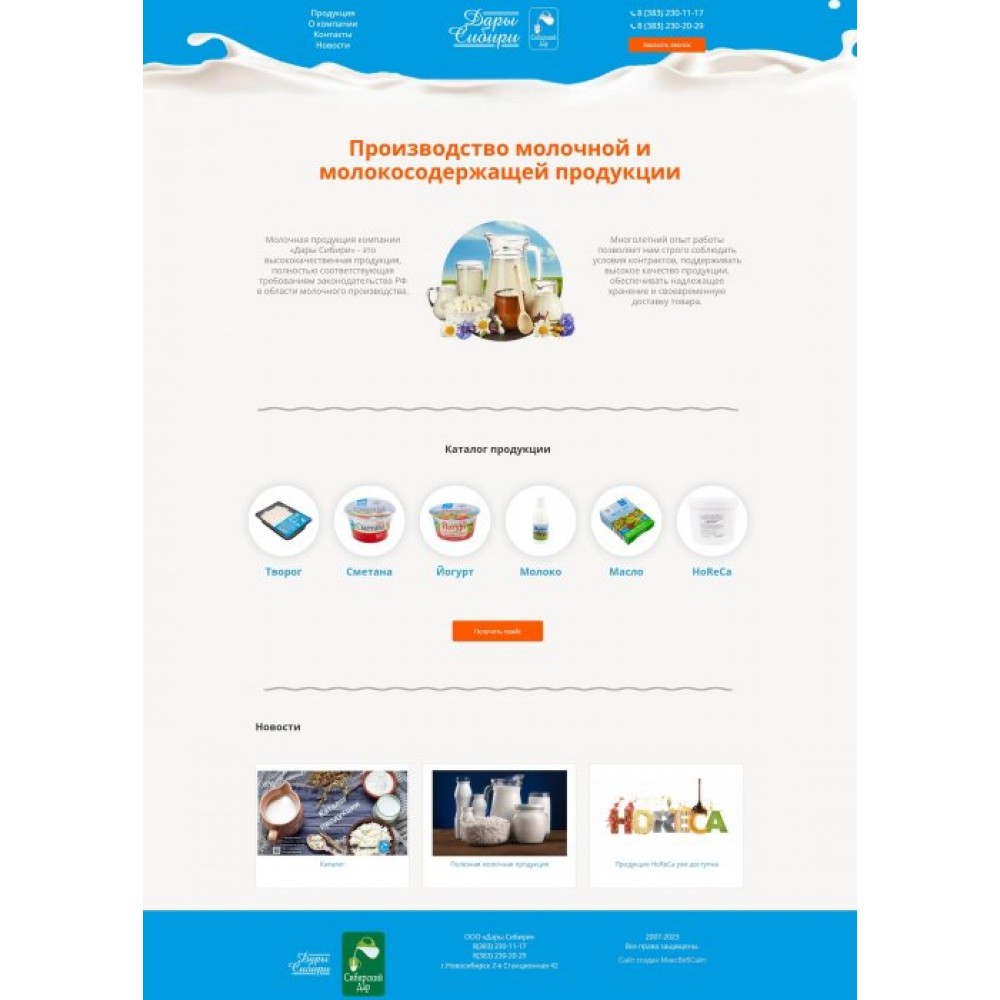 Сайт производителя молочной продукции от веб-студии Максвебсайт г. Сысерть